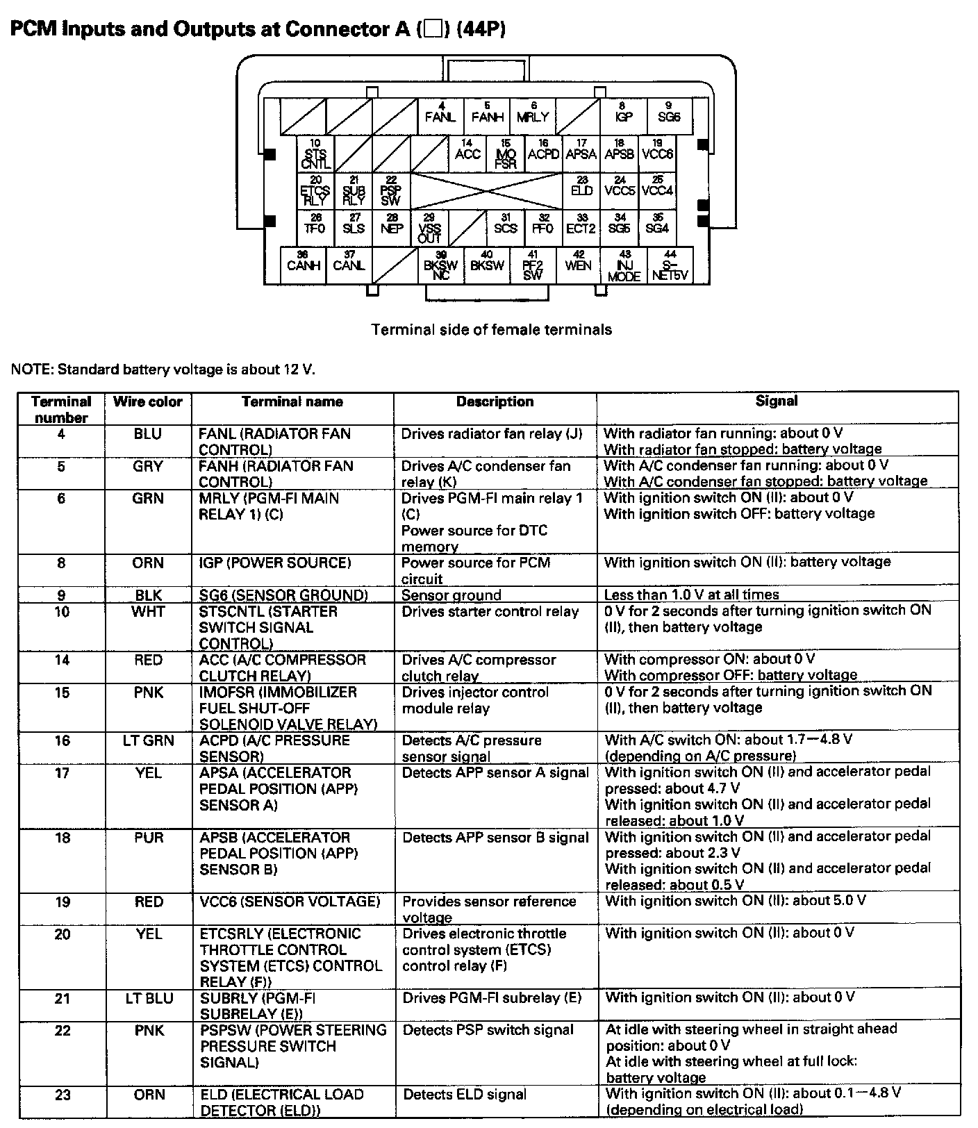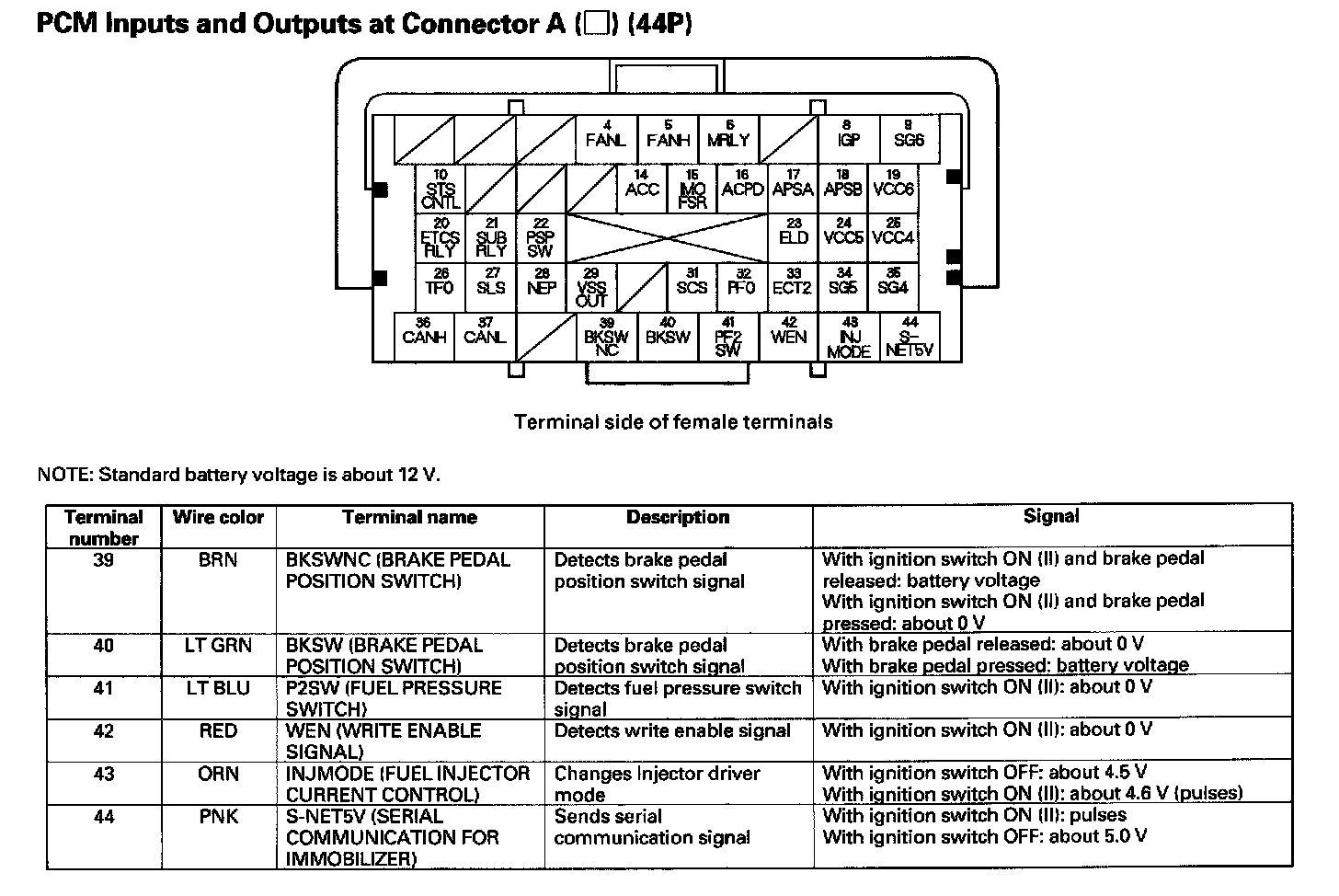 PCM Inputs And Outputs At Connector A (44P) Part 3: