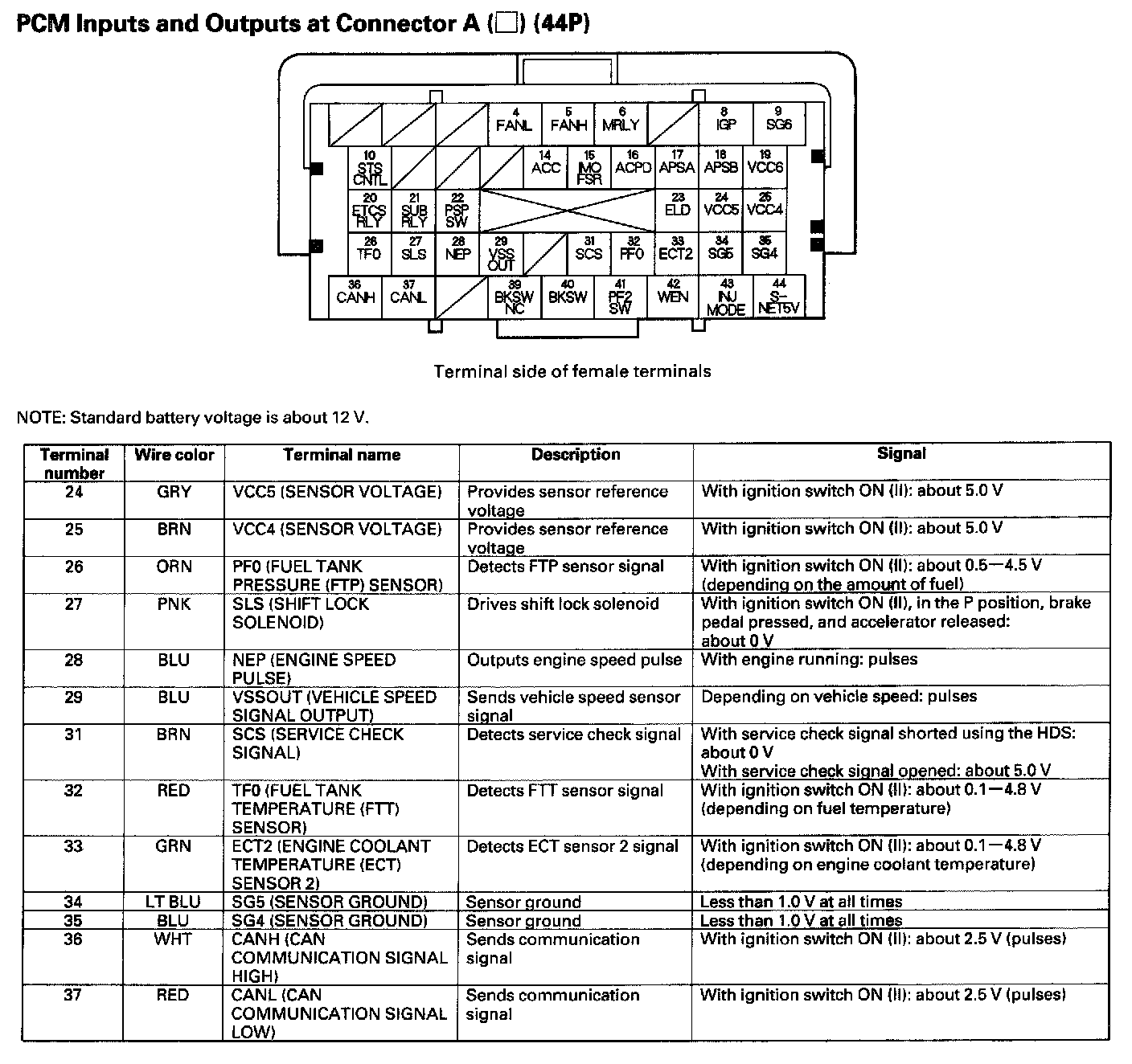 PCM Inputs And Outputs At Connector A (44P) Part 2: