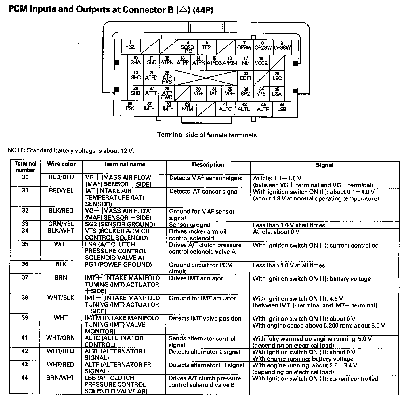 PCM Inputs And Outputs At Connector B (44P) Part 1: