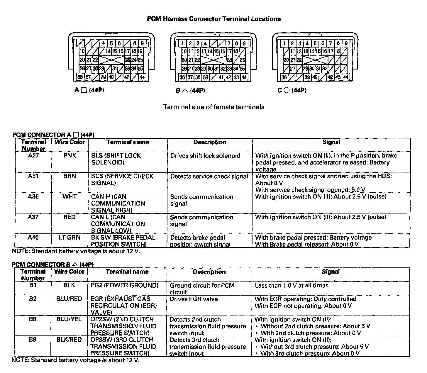 PCM A/T Control System Inputs and Outputs