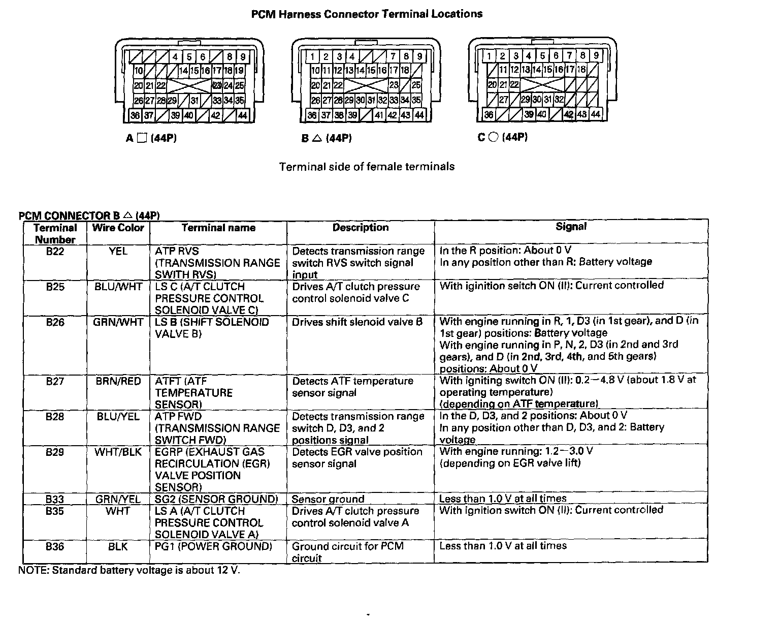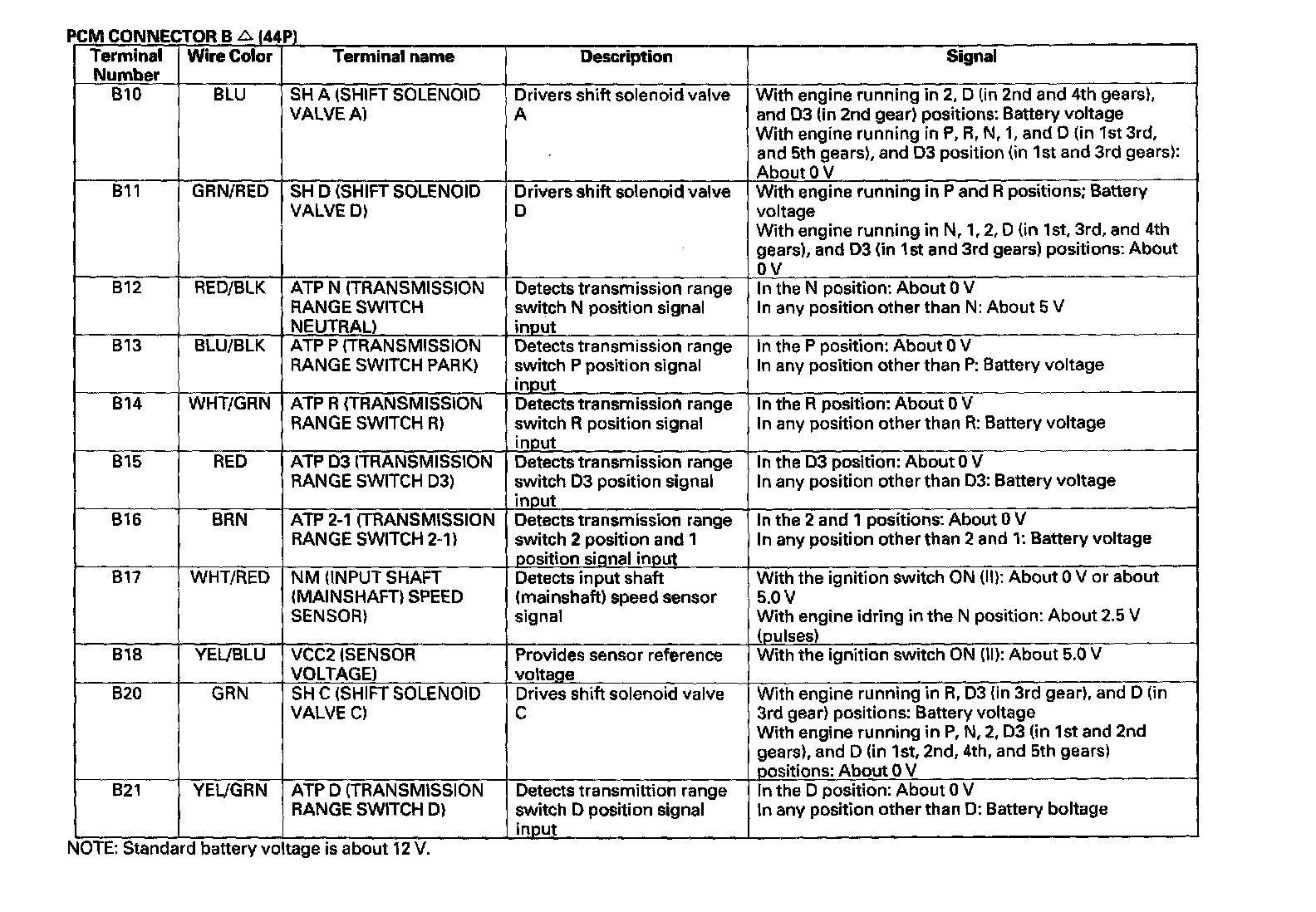 PCM A/T Control System Inputs and Outputs: