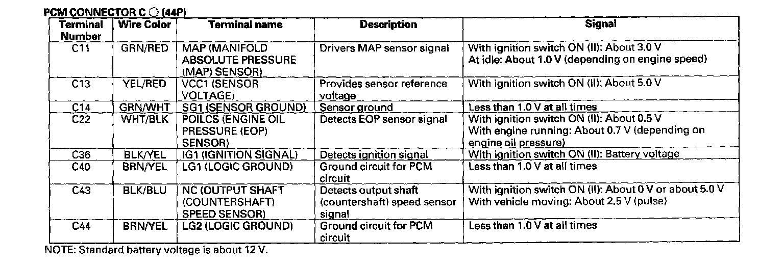 Pinout Values and Diagnostic Parameters
