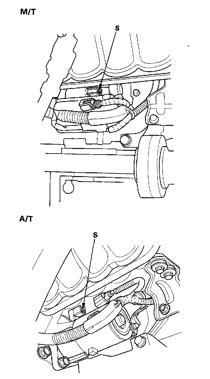 - The transmission range switch and connector (A/T) or the clutch interlock switch and connector (M/T).