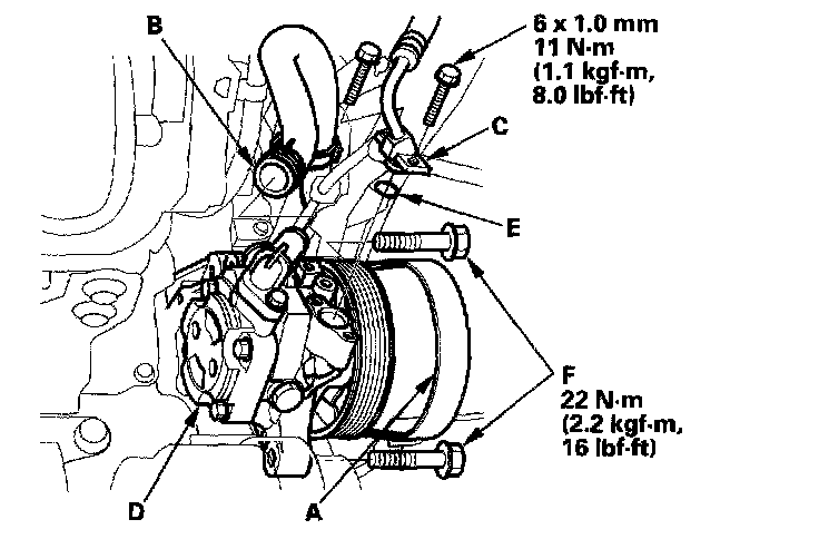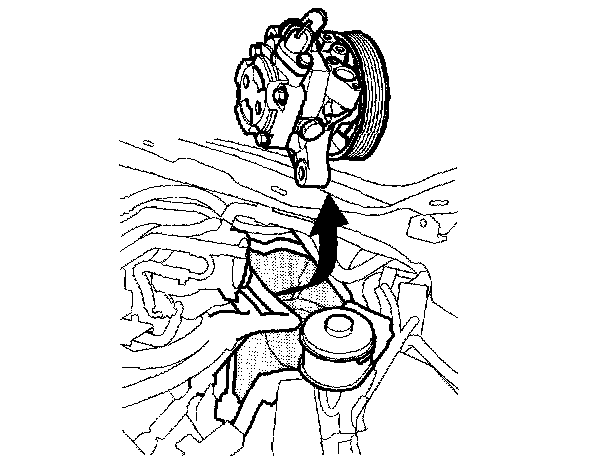 ^ Do not get power steering fluid or grease on any parts around the power steering pump, drive belt, or pulley faces. Clean off any fluid or grease before installation.