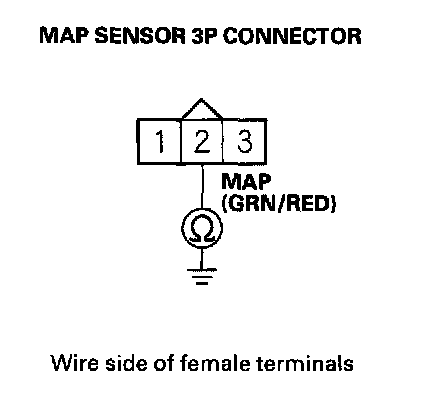 15. Check for continuity between MAP sensor 3P connector terminal No. 2 and body ground.