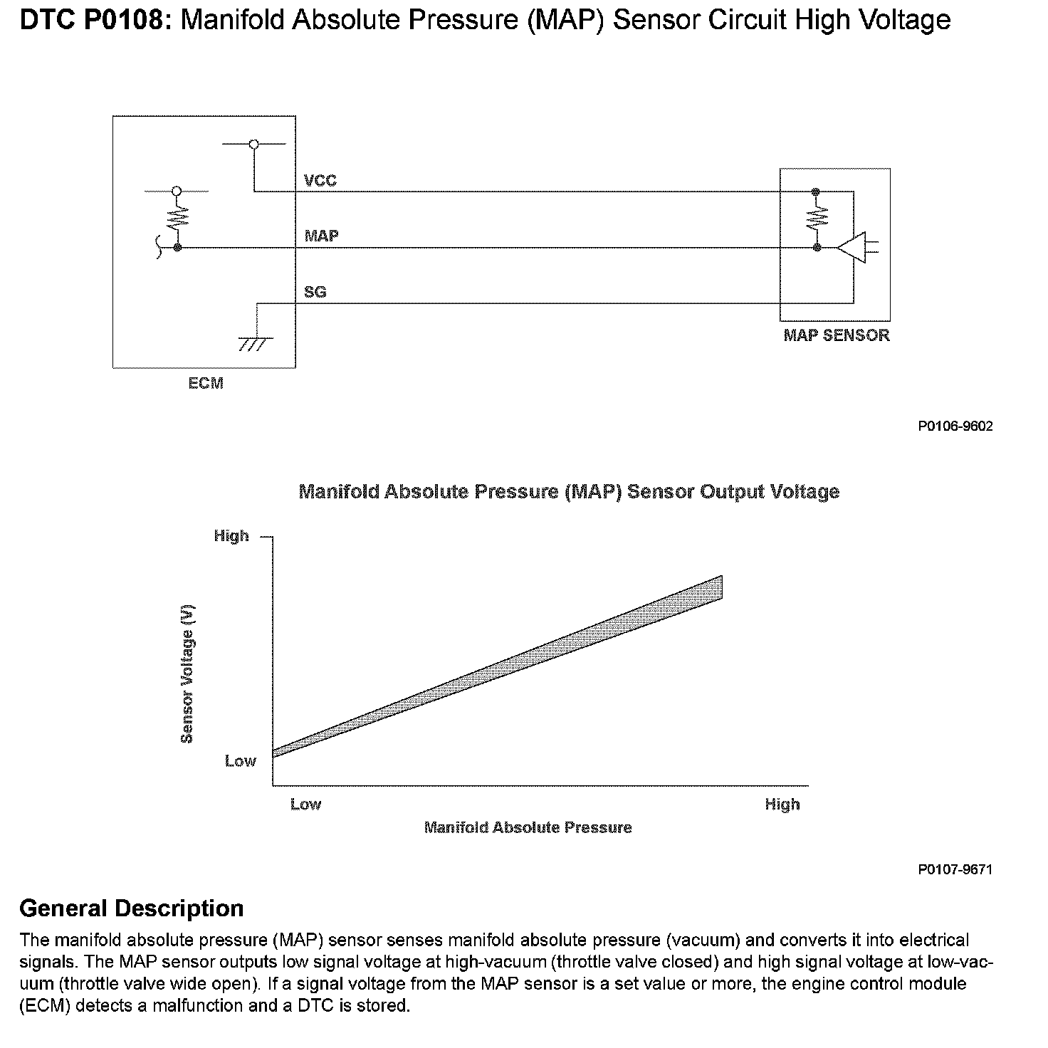 DTC P0108: MAP Sensor Circuit High VoltageNOTE: Before you troubleshoot, record all freeze data and any on-board snapshot, and review the general troubleshooting information.