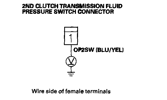 10. Measure the voltage between 2nd clutch transmission fluid pressure switch connector terminal and body ground.