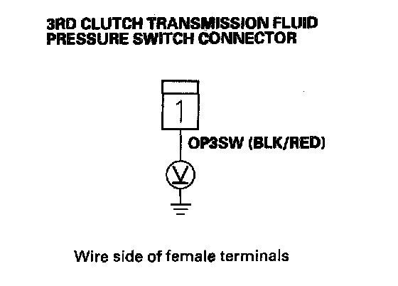 10. Measure voltage between 3rd clutch transmission fluid pressure switch connector terminal and body ground.