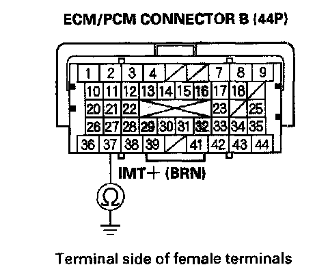 14. Check for continuity between IMT actuator 5P connector terminal No. 4 and ECM/PCM connector terminal B37.