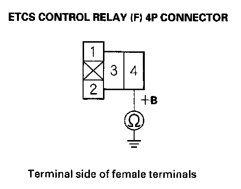 21. Check for continuity between ETCS control relay (F) 4P connector terminal No. 4 and body ground.