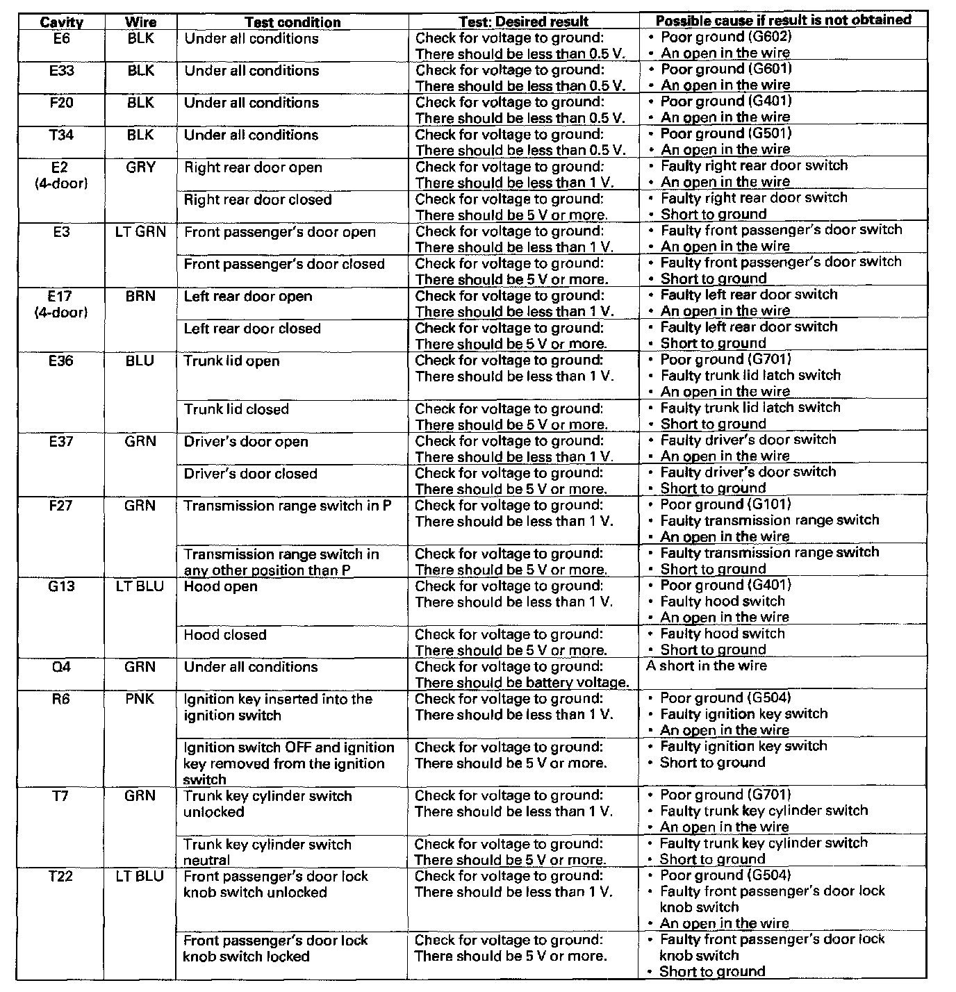 6. Reconnect the connectors to the under-dash fuse/relay box, and make these input tests at the connectors.