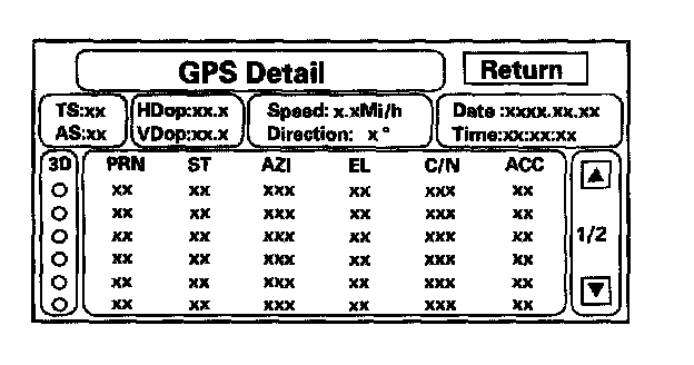 GPS DetailBy pressing and holding the MENU button for 10 seconds, a GPS Detail screen is displayed. This screen displays real time incoming satellite positional data. Most of the information shown on this screen is for factory use, however some of the data can indicate partial GPS signal interference.