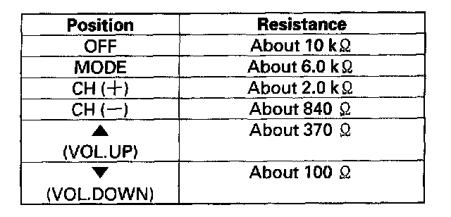 3. Measure the resistance between the No. 9 and No. 10 terminals in each switch position according to the table.