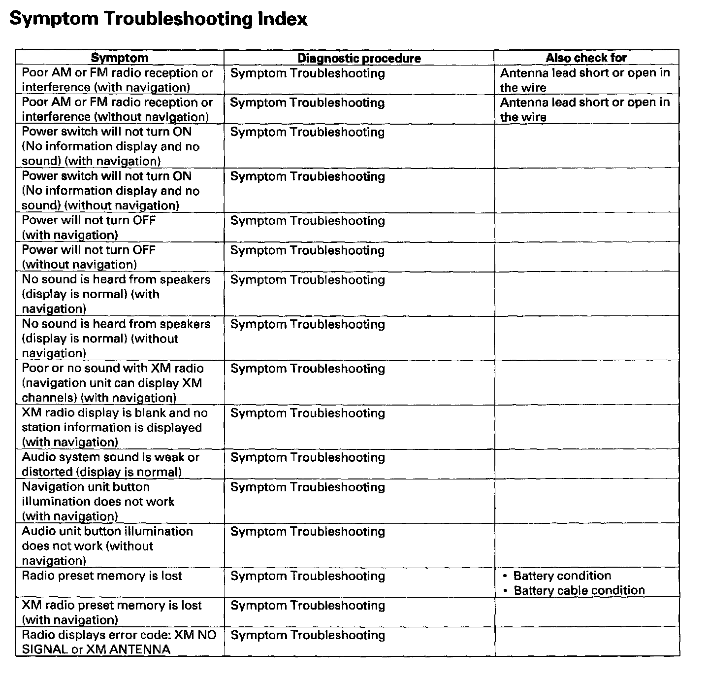 Symptom Troubleshooting Index Part 2: