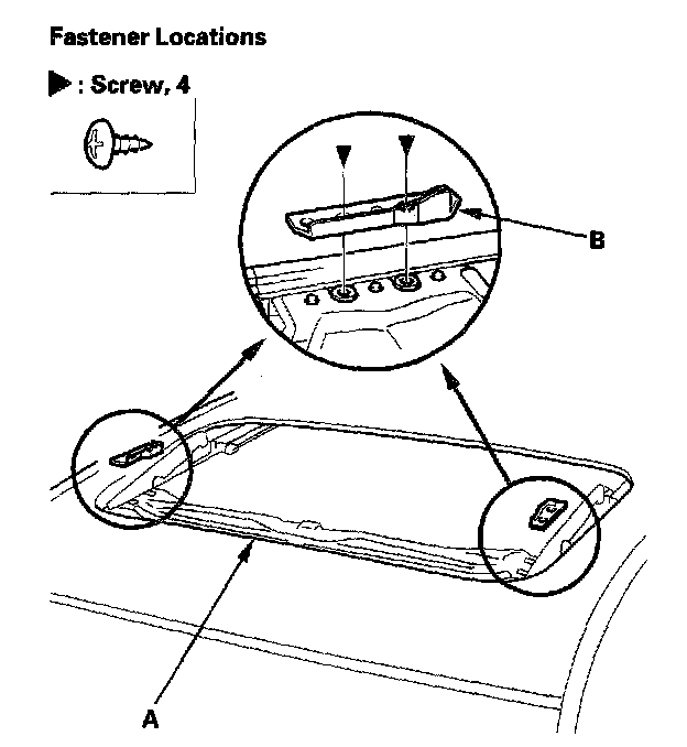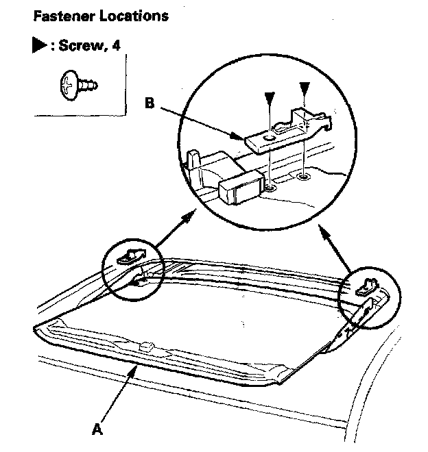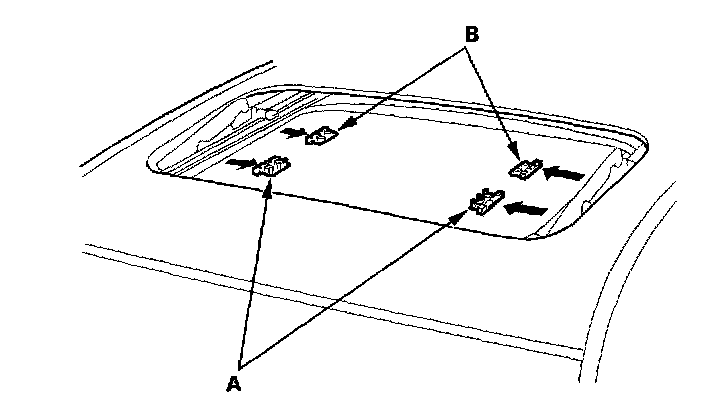 7. Remove both front sunshade base sliders (A) and both rear sunshade base sliders (B).