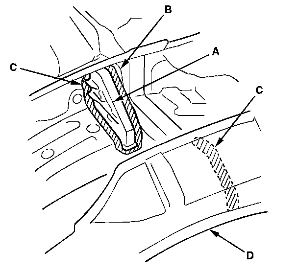 NOTE: Apply the sealer (C) all the way around the separator and inside of the wheelhouse upper member (D), without gaps.