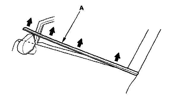 3. Starting at the front, slowly pull up the front door glass outer weatherstrip (A).