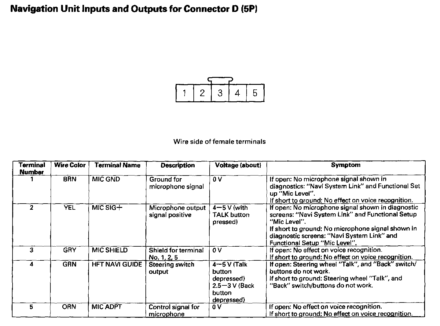 Navigation Unit Inputs And Outputs For Connector D (5P):