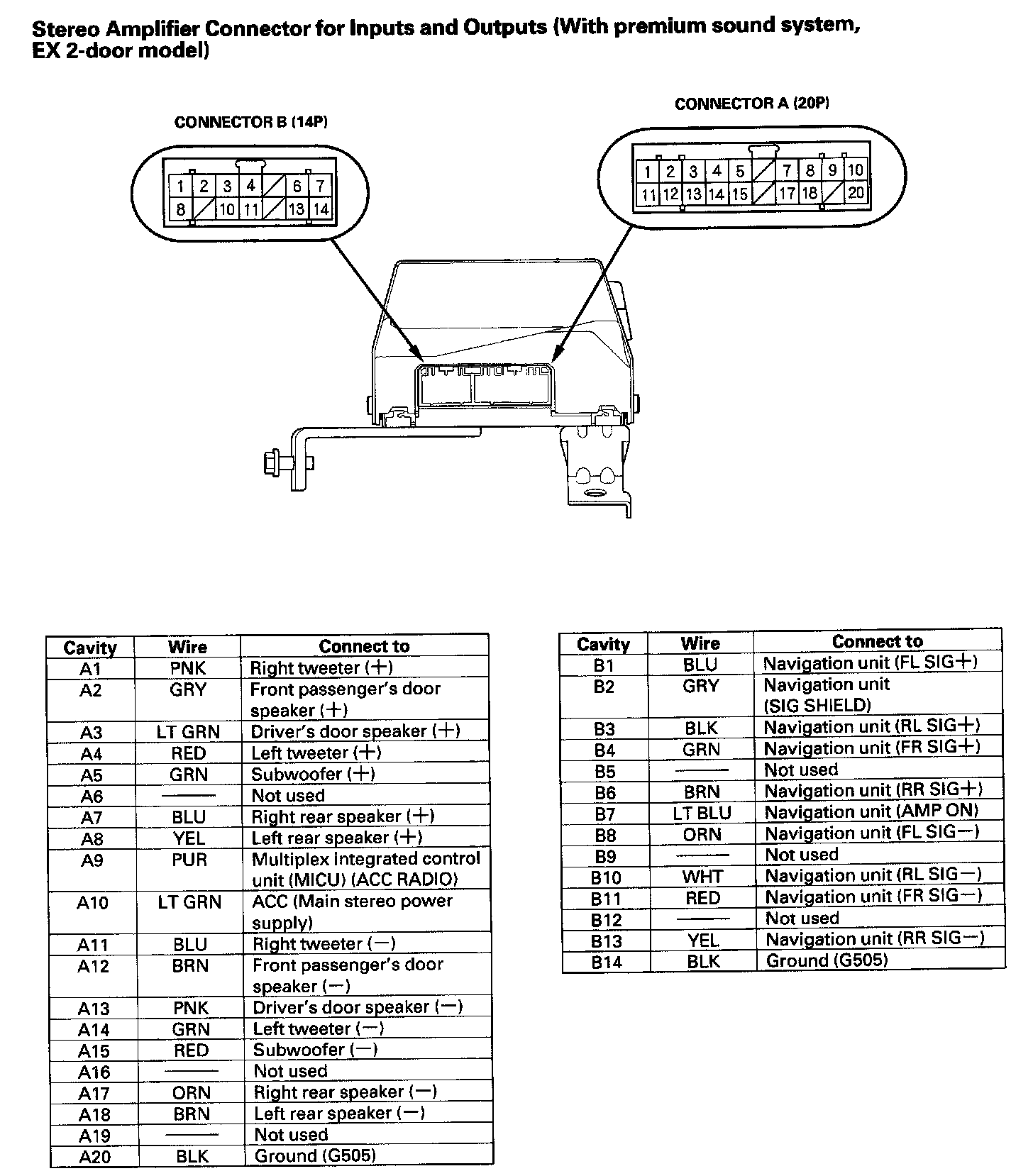 Stereo Amplifier Connector For Inputs And Outputs (with Premium Sound System, EX 2-door Model):