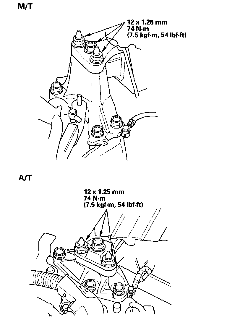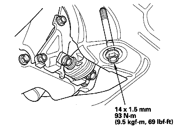 14. Tighten the transmission mounting bolt and nuts.