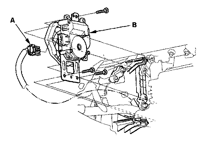 3. Disconnect the 7P connector (A) from the mode control motor (B). Remove the self-tapping screws and the mode control motor from the heater unit.
