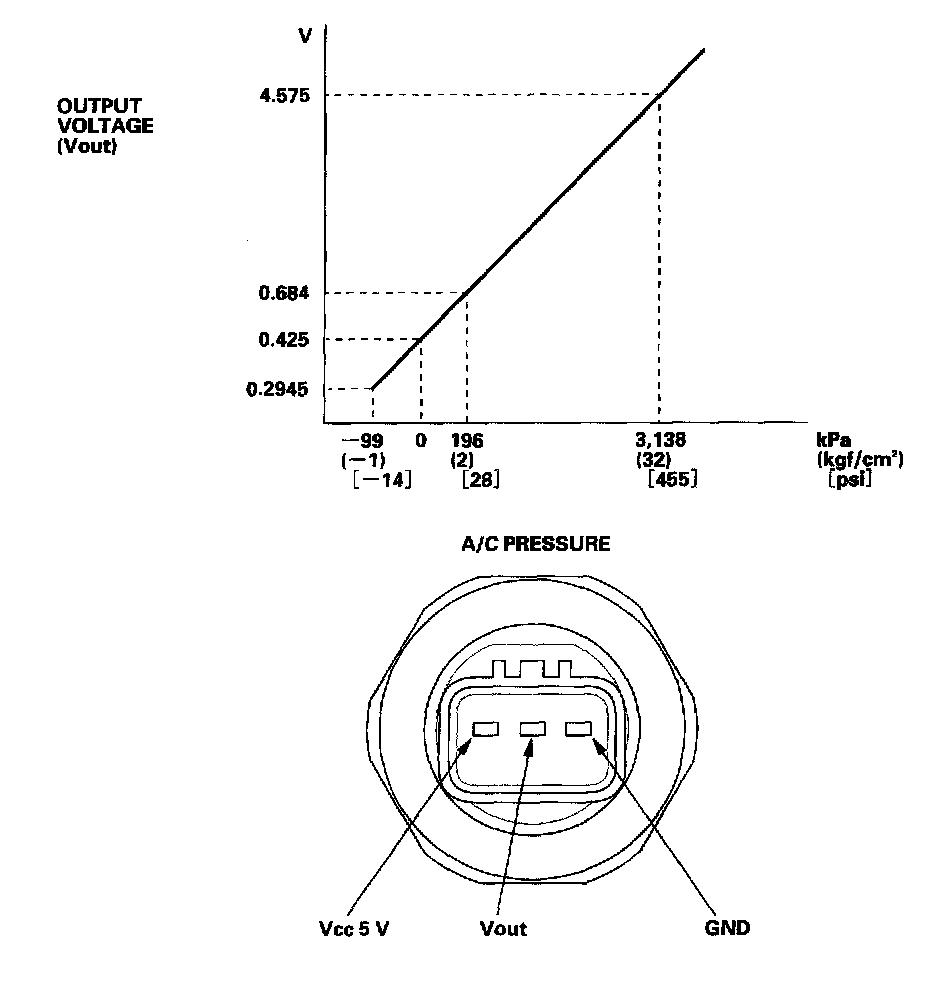The A/C pressure sensor converts A/C pressure into electrical signals to the ECM/PCM.