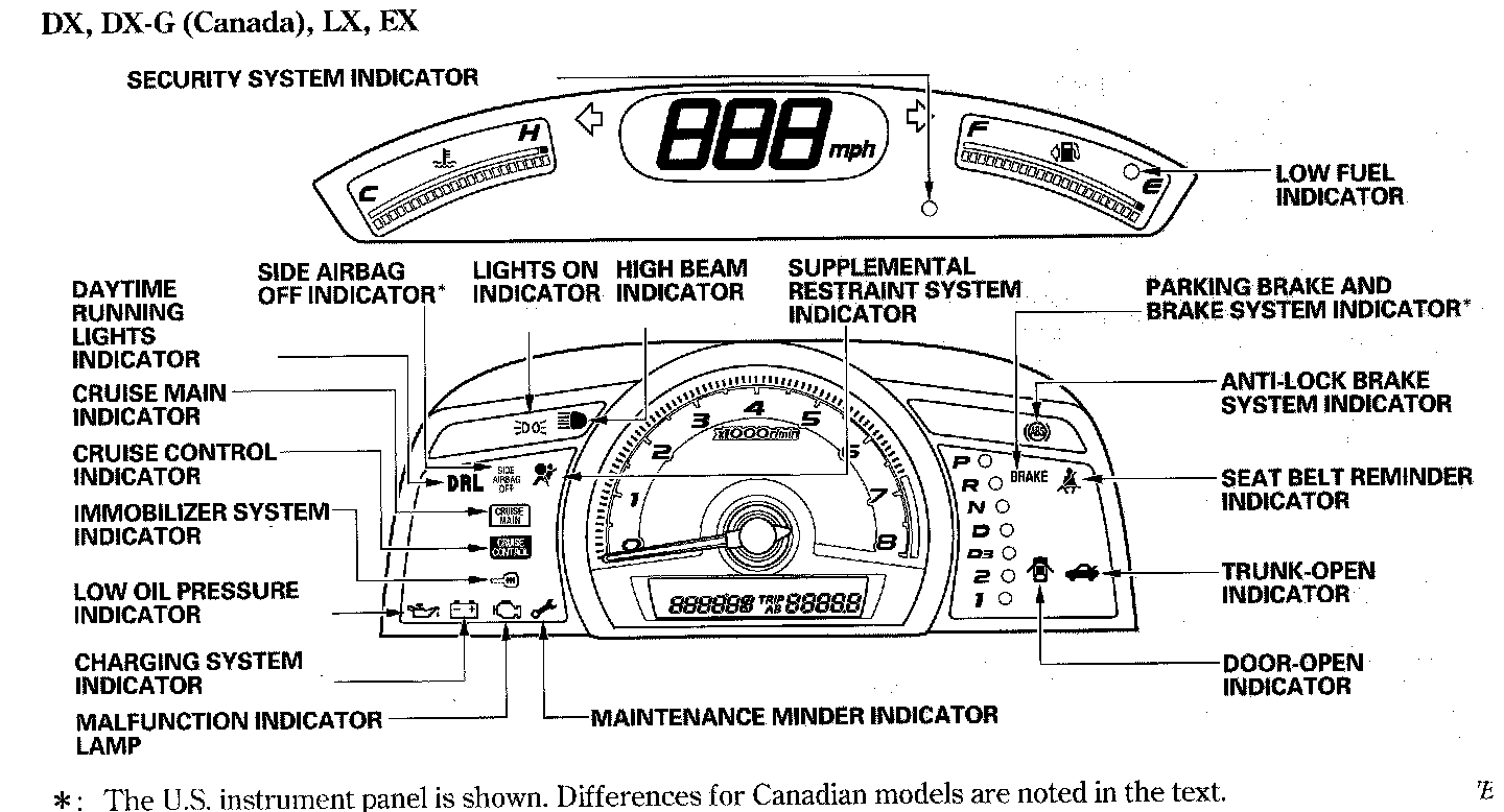 Instrument Panel, Gauges and Warning Indicators