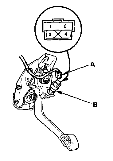 Brake Pedal Position Switch Test1. Disconnect the 4P connector (A) from the brake pedal position switch (B).