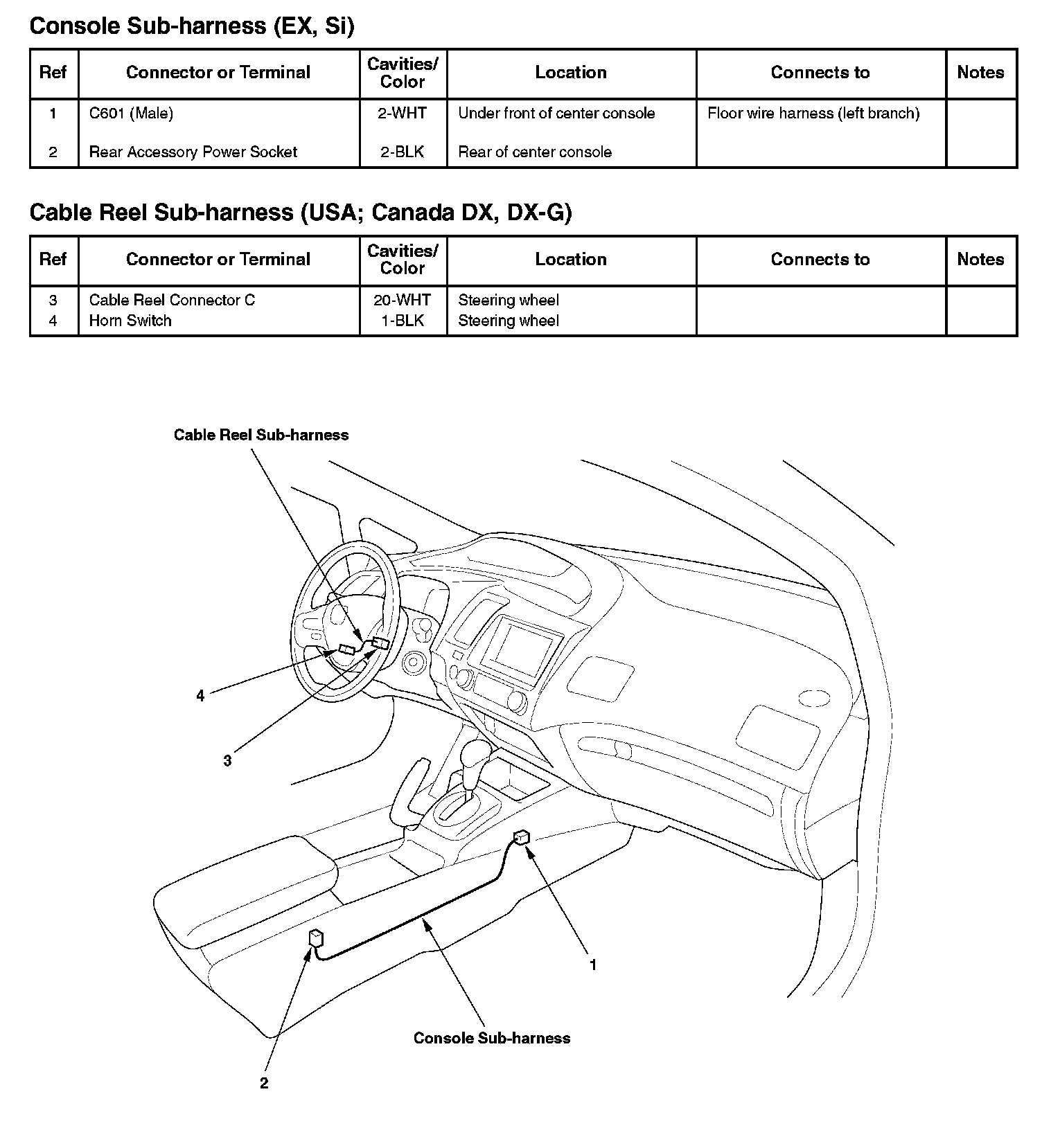 Console Sub-harness (EX, Si)/Cable Reel Sub-harness (USA: Canada DX, DX-G):
