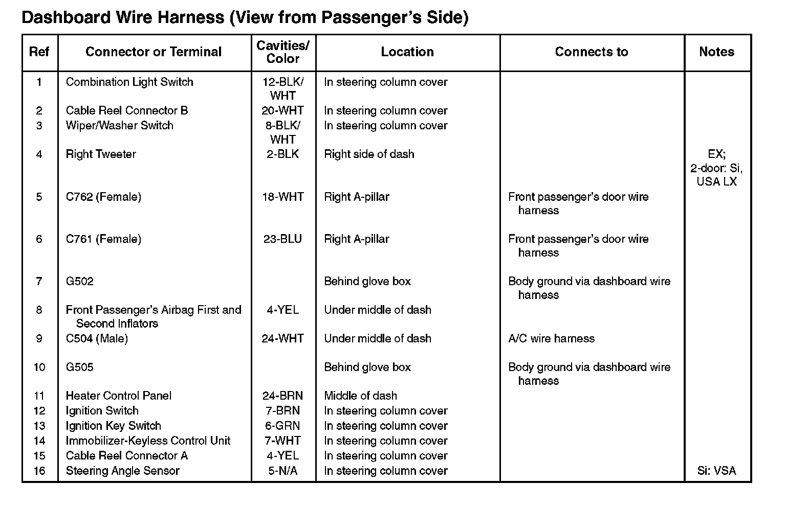 Dashboard Wire Harness (View from Passenger's Side):