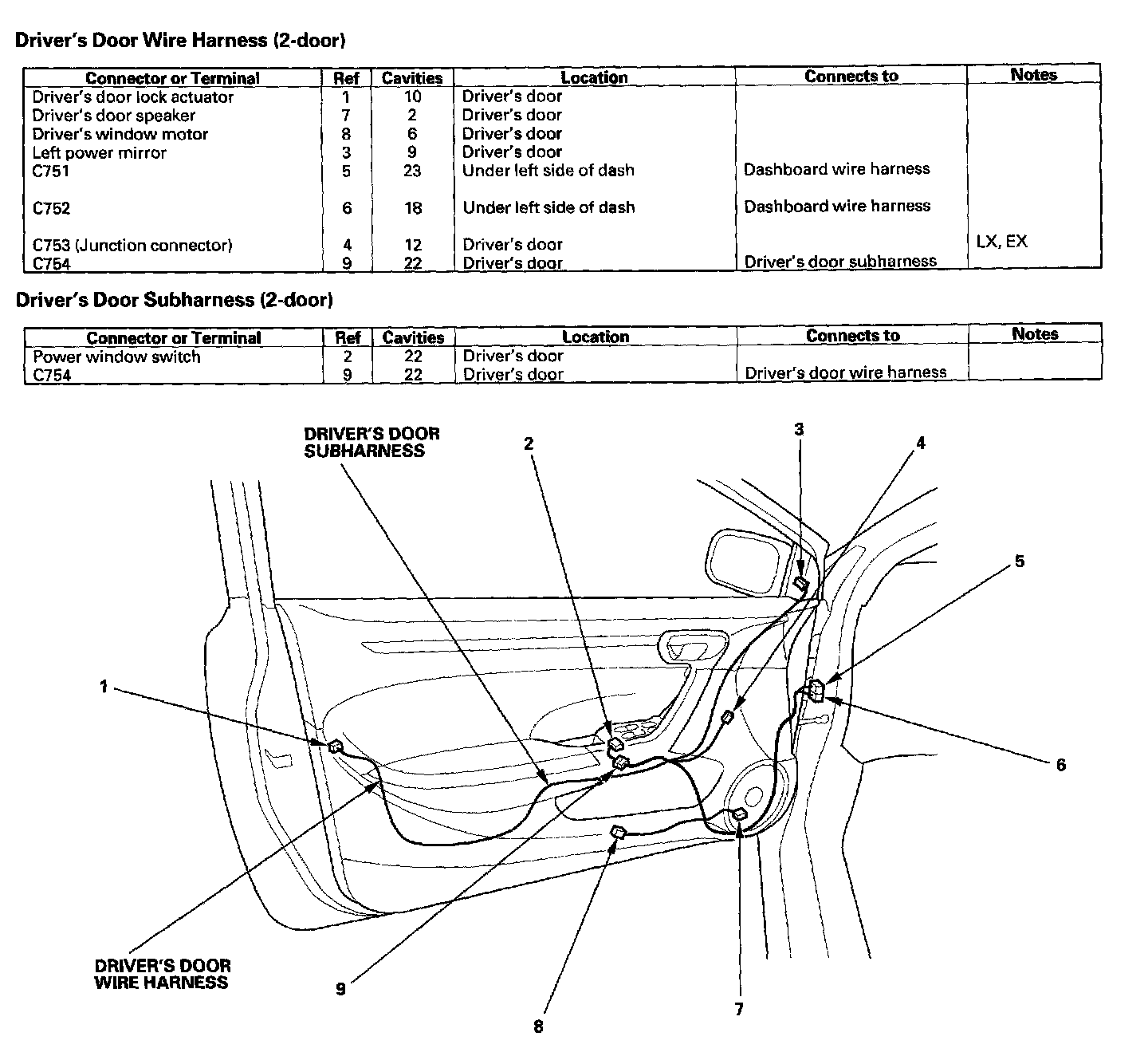Driver's Door Wire Harness (2-door)/Driver's Door Subharness (2-door):