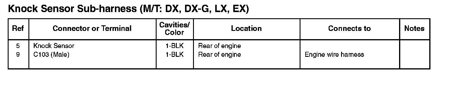 Knock Sensor Sub-harness (M/T: DX, DX-G, LX, EX):