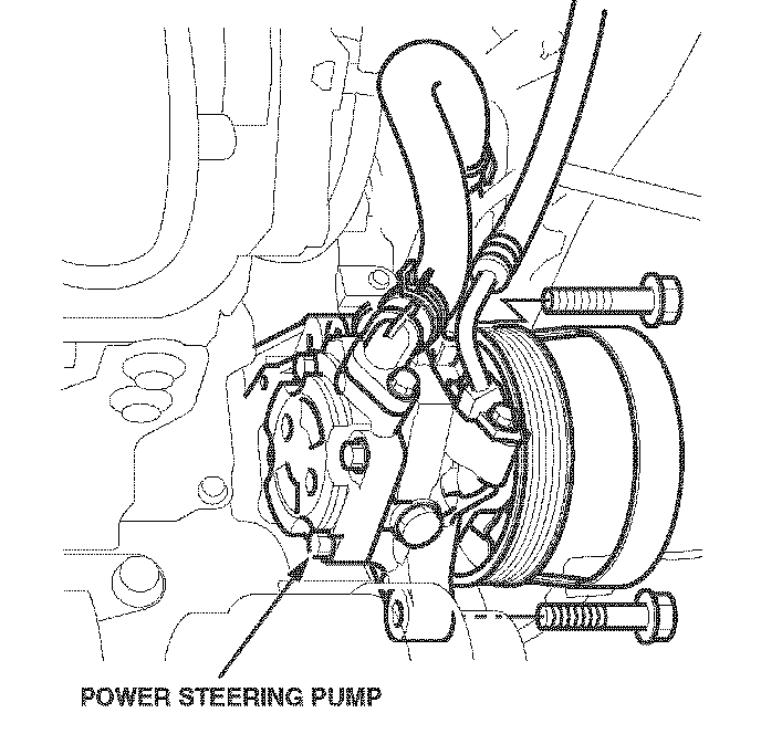 5. Remove the two power steering pump mounting bolts, then lower the pump so you can access the 20-mm sealing bolt.