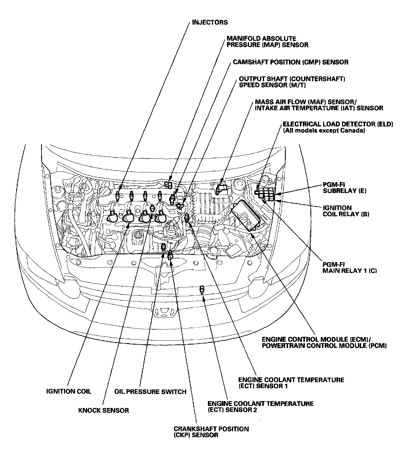 Coolant Temperature Sensor/Switch (For Computer): Locations