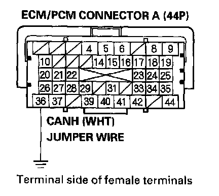 13. Remove the jumper wire from ECM/PCM connector A (44P).