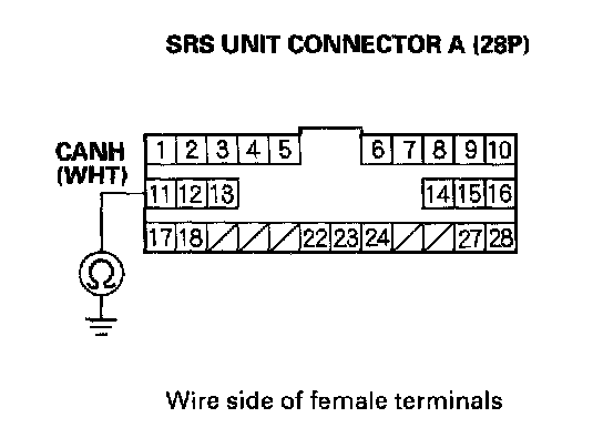 12. Check for continuity between SRS unit connector A (28P) terminal No. 11 and body ground.