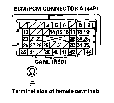 8. Check for continuity between ECM/PCM connector terminals A36 and A37.