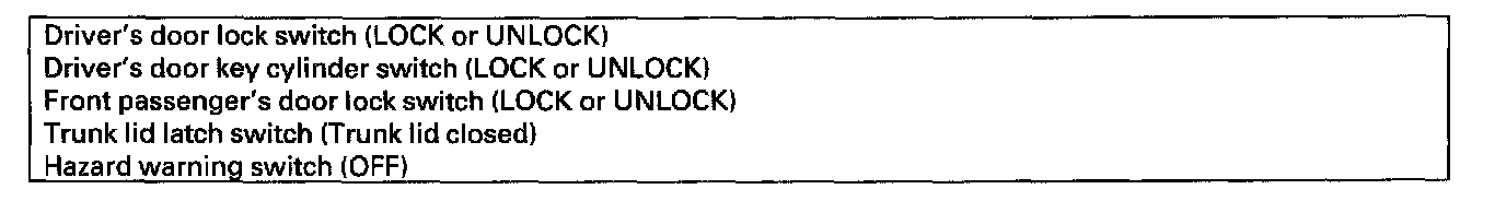 When the ignition switch is turned ON (II), the MICU, gauge control module, immobilizer-keyless control unit-receiver, and ECM/PCM wake up at the same time without "talking" to each other through the communication lines. When any switch in the multiplex integrated control system is turned on, it wakes up its related control unit which, in turn, wakes up the other units. After confirming the sleep mode, look in the above table for the switch most related to the problem. Operate that switch and see if its control unit wakes up.