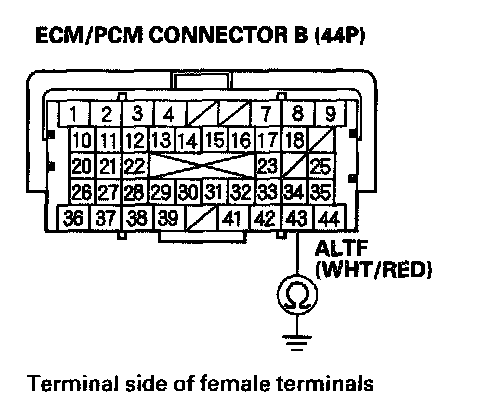8. Check for continuity between body ground and ECM/PCM connector terminal B43.