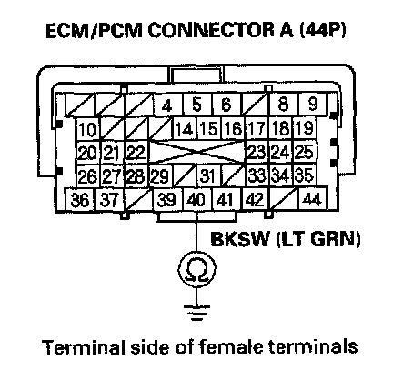 8. Check for continuity between ECM/PCM connector terminal A40 and body ground.