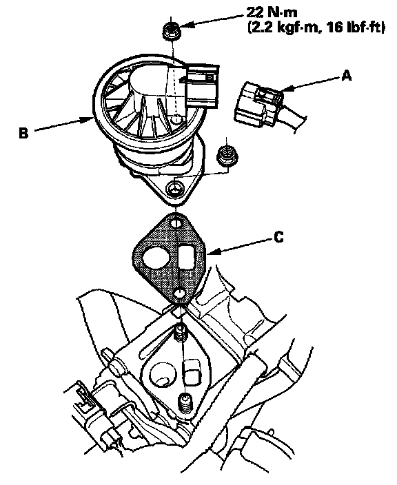 4. Install the valve in the reverse order of removal with a new gasket (C).