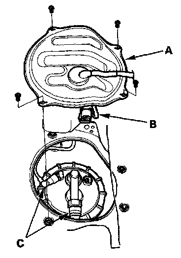 7. Disconnect the quick-connect fittings (C) from the fuel tank unit.