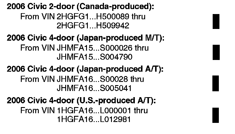 2006 Civic - See VEHICLES AFFECTED