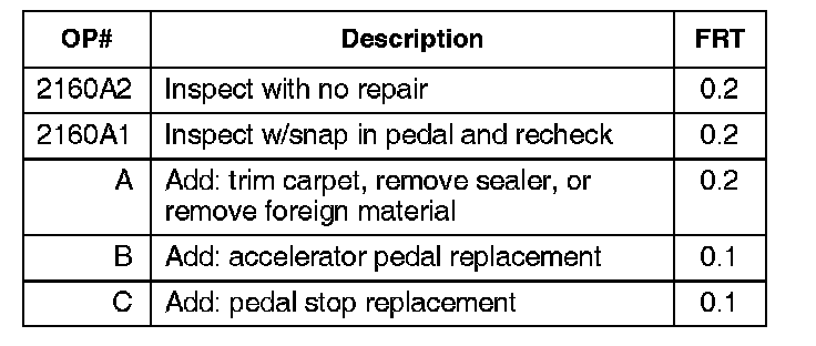 ^ Inspect the area under the pedal stop for seam sealer or any other foreign material that may interfere with the correct setting of the accelerator pedal in the pedal stop.