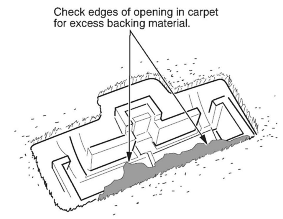 ^ Carefully cut away the seam sealer, the carpet, or any foreign material with an X-acto knife.