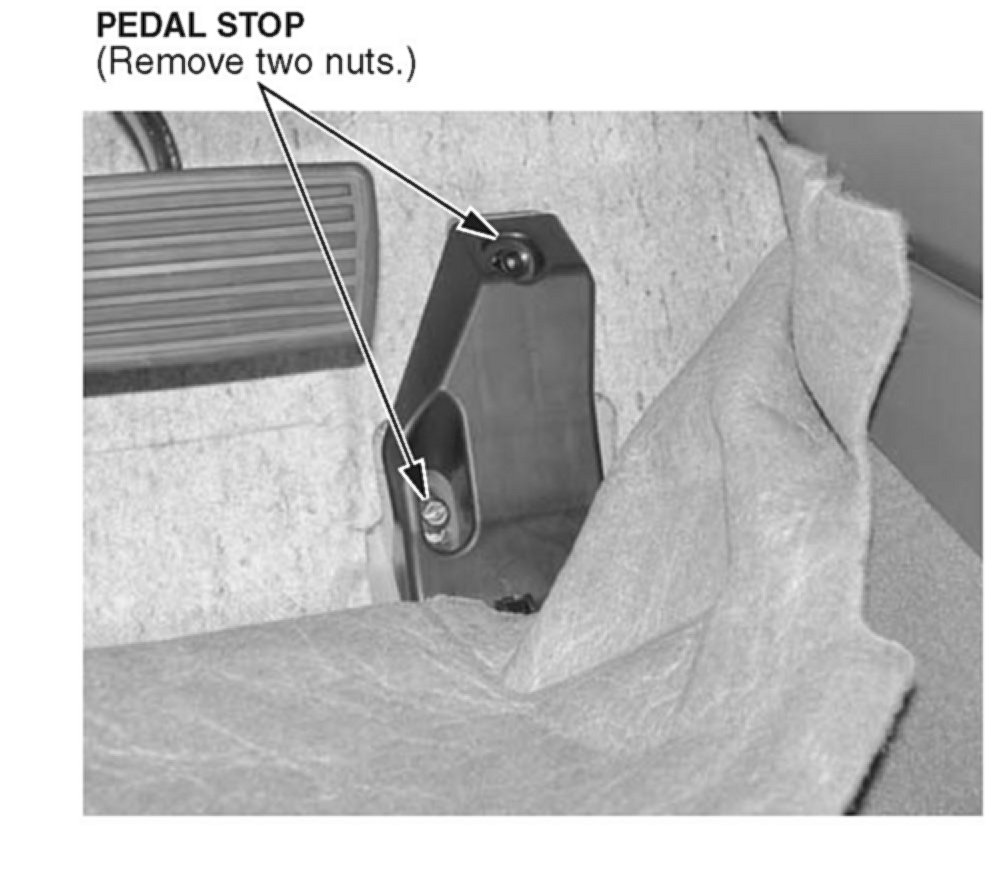 ^ Remove the two nuts on the pedal stop, then remove the stop.