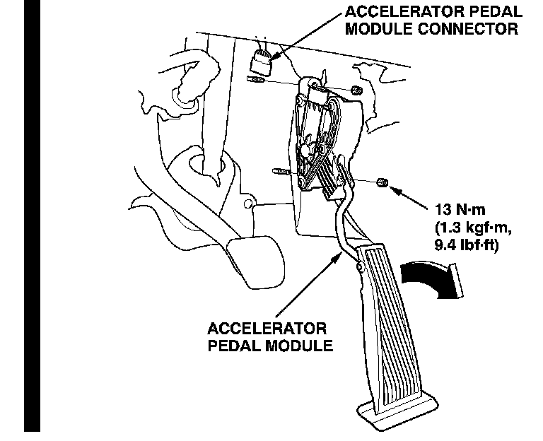 ^ Disconnect the connector from the accelerator pedal sensor.
