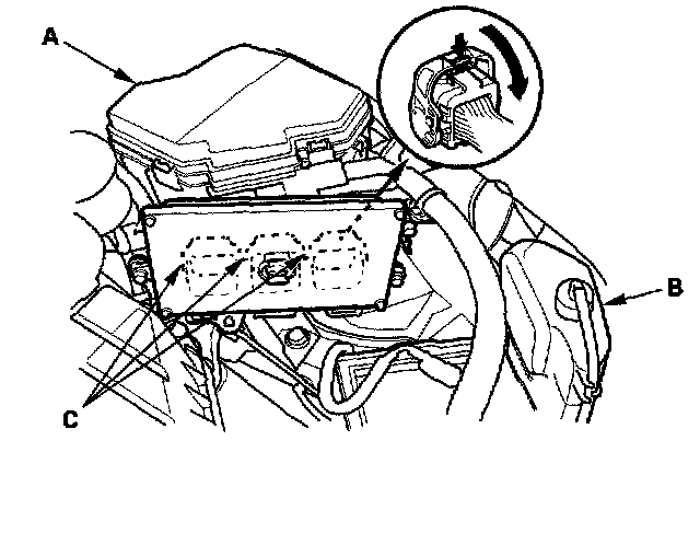 3. Remove the mounting bolts, disconnect the PCM connectors, and probe the terminals in the inspection port on the terminal side of the connectors.