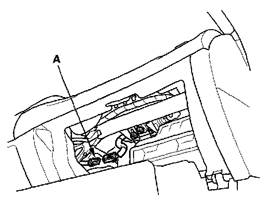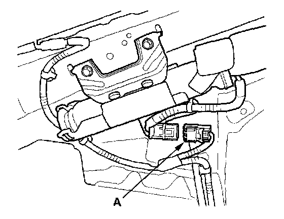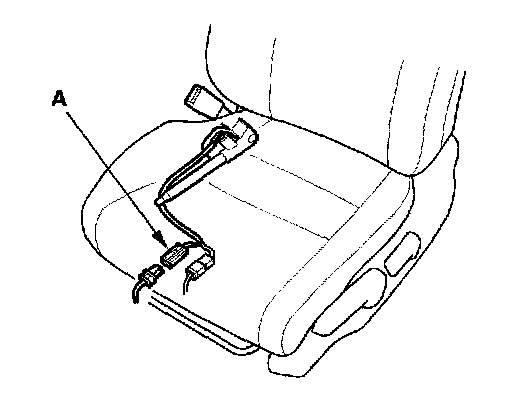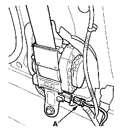 9. Disconnect the floor wire harness 4P connector (A) from the seat belt buckle tensioner.