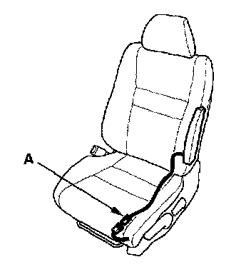 6. Disconnect the side airbag 2P connector (A) from the floor wire harness.